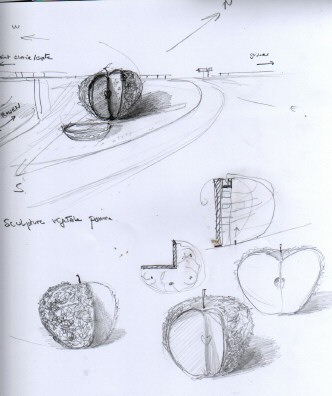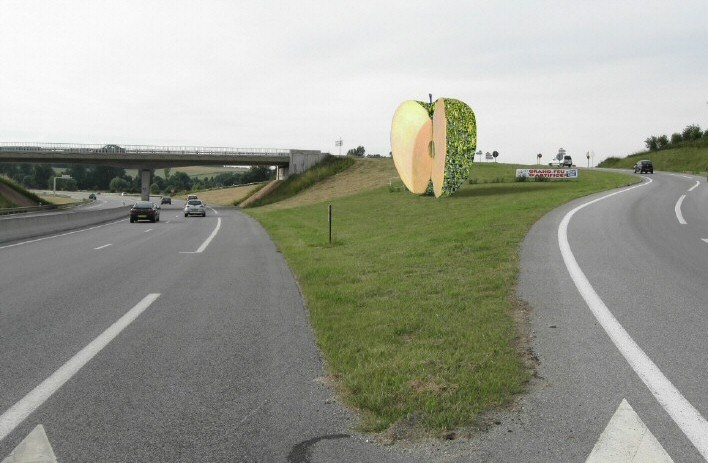 Sculpture végétale "Pomme Saint Clair, porte de la Normandie" Bretelle acces RN14 Saint Clair sur Epte en venant de Paris. |