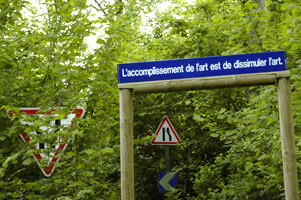 Parcours balisé, panneaux de circulation détournés par Pierre