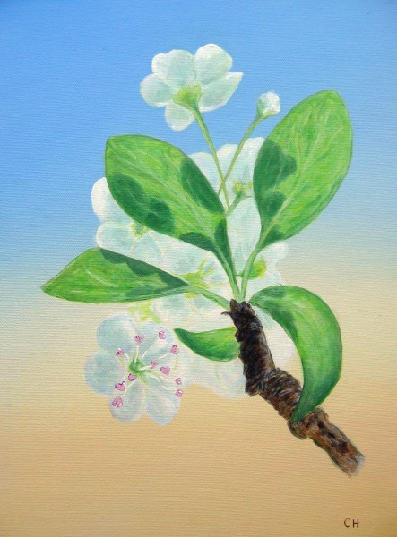 Dans la tradition des plantes médicinales, l'aubépine est "bonne pour le cœur" . Christelle traduit cette vertu en jouant graphiquement avec les étamines de la fleur. |