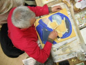 Ci-contre � gauche un ensemble de travaux similaires r�alis�s � l'atelier. Ici, Jean Pierre a pris comme mod�les