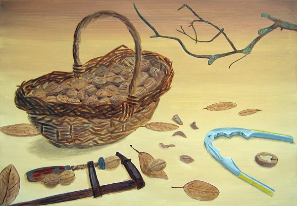 Lle panier est réutilisé pour la seconde peinture, une corne d'abondance avec des légumes. Ceci afin de participer à la première fête des fruits et légumes de Magny en Vexin.