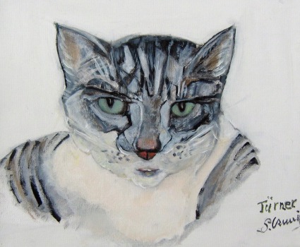 Plusieurs essais sont peints en prévision des paraboles, le projet principal de la saison 2006-2007 à l'Atelier du Pommier. Sylvie essaye des Pierrots (voir à gauche ci-contre), puis des lunes aux regards mystiques, puis des chats. A constater une constance: une petite fascination pour exprimer le regard, que ce soit pour la chouette, les pierrots, la lune, les chats, les fenêtres d'un château, le centre d'une coquille d'escargot, l'agitation paisible des coquelicots. Affaire à suivre.... |