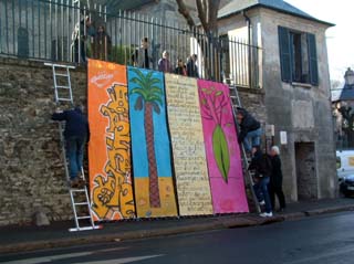 Le lendemain, samedi 24 avril 2004, cet atelier sera offert aux habitants de la commune de Saint Clair, en associant également des artistes et artisans de la commune qui ont, de leur côté déjà, entrepris des actions d'animation artistique trés réussies auprés des jeunes (fresque et poëme arbre avec Veronique Goriou et Mme Michèle Vieville) |