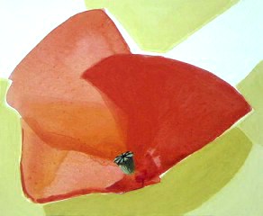 Ce n'est donc plus de la peinture figurative, mais pas encore vraiment de l’abstrait…  d'ailleurs, pour faire bon poids bonne mesure, je peins en contrepoint un pistil de coquelicot, quelquefois où ça me chante.