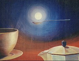 This work was done on canvas, in a paint studio in France. Then, after being glued on panels by a company in Venice, it was installed in "The Governor", an upscale coffee shop in the ground floor of the new Moscow City Hall. |
