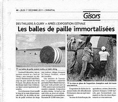 Du haut de mon donjon Vu à la télé Les balles de paille disposées le long de la route départementale 6014 entre Guiry et les Thilliers – œuvre de l’association l’Atelier du Pommier – ont fait parler d’elles. A la télé, le reportage réalisé par France3 Haute-Normandie a même été repris dans la version nationale de la chaîne. |