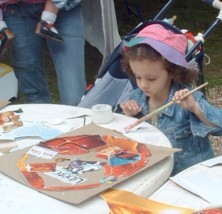 Les volontaires accompagnateurs du Secours Populaire se mettent elles aussi à la peinture |