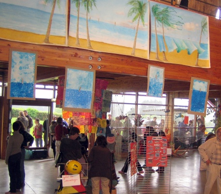 "Le grand rassemblement de tous les enfants (555 !!) ayant participé au projet est terminé... Les enfants présentaient des œuvres en arts plastiques, du théâtre, et des chansons... Ils se sont succédés à la galerie européenne de la forêt et du bois à Dompierre les Ormes (71) jeudi et vendredi avec leurs enseignants. Hier samedi, la galerie était ouverte au public et 420 personnes s'y sont rendues pendant tout l'après midi. Manque de chance, il a plu et nous n'avons pu faire les activités prévues dehors... Notre "travail collaboratif" a été très apprécié. J'avais mis un mot explicatif pour les visiteurs et tout le monde a trouvé que cette "interconnexion" entre un artiste et des enfants était vraiment très intéressante..." (extrait d'un courriel de l'institutrice, le 14 mai 2006) |